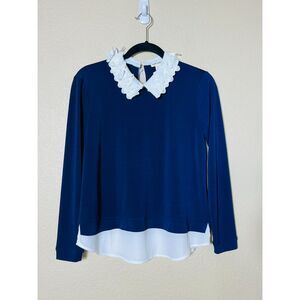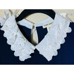 NWT Faith and Joy Navy White Butterfly Detail Collar Twee Cottage Blouse XS READ