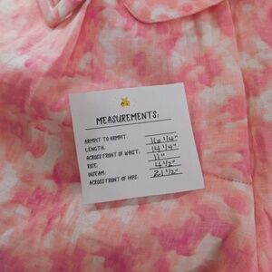Defined waistband with belt loops … adjustable/removable belt at waist ~ High waisted ~ Fabric-covered button & zipper closures on the front ~ Pleating on the front under the waist ~ Inset slanted front pockets … two inset welt pockets on the backside with button closures ~ Stitched down cuffs on the bottoms of the legs ~ Longer Bermuda length ~ Soft unlined 100% linen fabric … fabric does not have any stretch ~ Tie dye pattern in pink & white … color/pattern is called “Roos Tie Dye” in “Pink”
