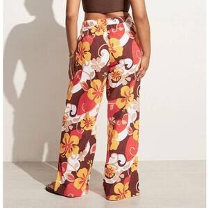NWT Faithfull the Brand Celvia Ulani Floral Print Cotton Pant Sz. 2 [XS] Brown White