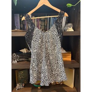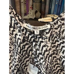 NWT Falcon & Bloom x Gold Hawk Black & White Animal Print Silk Blouse Size Small