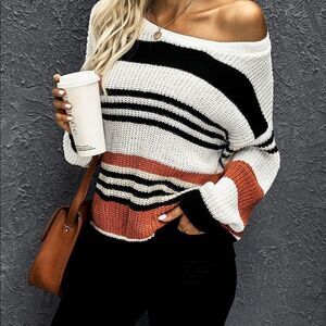 NWT Fall Festival Black Striped Pattern Knit Sweater