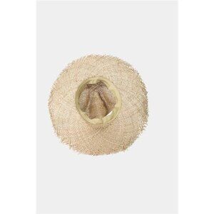 *This stylish natural straw wide brim hat features a breathable woven construction perfect for summer activities. The hat showcases a rustic bohemian design with frayed edges that add a casual, relaxed aesthetic. Made from lightweight natural straw material, it provides excellent sun protection with its generous wide brim coverage. The neutral beige color complements any summer wardrobe, making it an ideal accessory for beach outings, garden parties, or casual outdoor adventures. The textured weave pattern ensures durability while maintaining comfort and style.