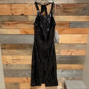 NWT Fame & Partners Black Sequin Halter Backless Sheath Dress Size 6 Cocktail