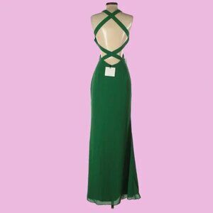 NWT Fame and Partners Green Halter Cut Out Backless Elegant Maxi Gown Size US 2