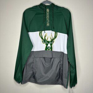 NWT Fanatics Milwaukee Bucks Anorak Flagrant Foul Hoodie Half Zip Jacket Size L
