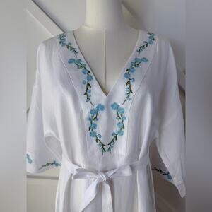 NWT Fanm Mon x Andie Kepez Kaftan Embroidered Dress White 100% Linen Size Small