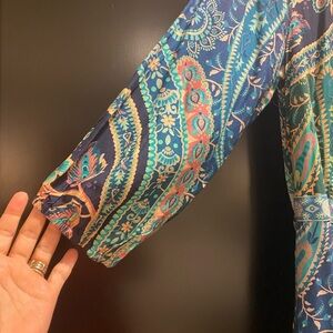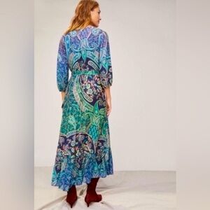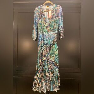 NWT Farm Rio Anthropologie Amorina Tropical Floral Wrap Maxi Dress In Blue Motif