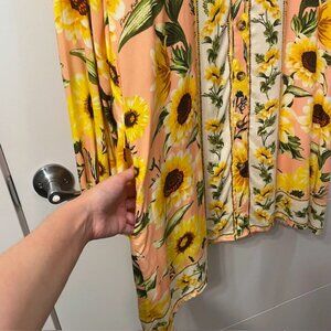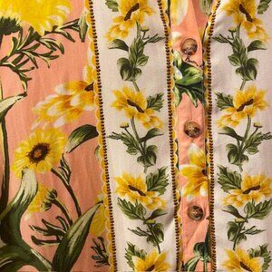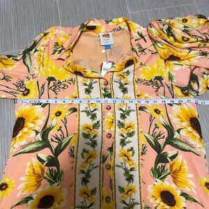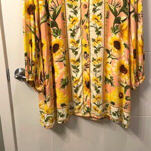 NWT Farm Rio Anthropologie Long Sleeve Button Front Mini Sunflower Dress Large