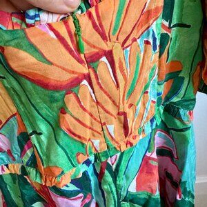 NWT Farm Rio Banana Foliage Puff-Sleeve Cotton Voile Midi-Dress - Large