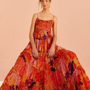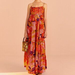 NWT Farm Rio Beige Jungle Panther Lenzing™ Ecovero™ Viscose Maxi Dress, Size L