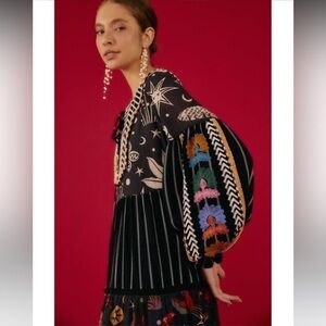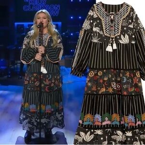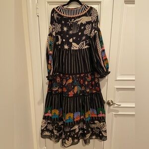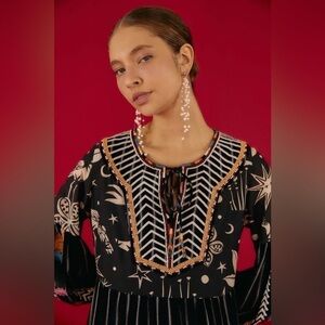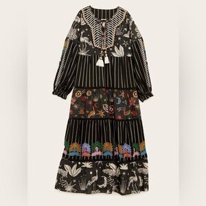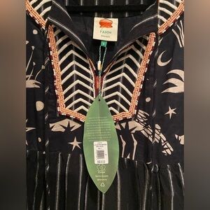 NWT Farm Rio Black Mixed Prints Embroidered Beaded Black White Maxi Dress Unique