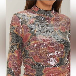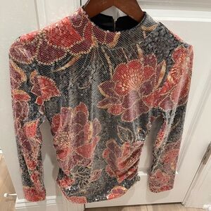 NWT Farm Rio Black Shiny Chita Tulle Sequins Blouse XS