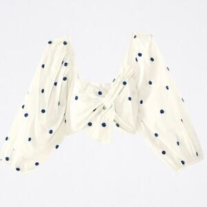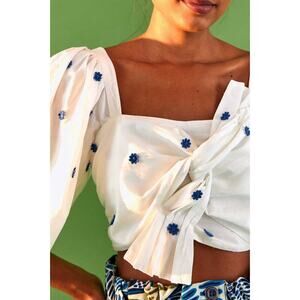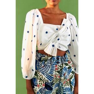 NWT Farm Rio Blue Flowers Crop Top Cotton Long Sleeve Puff Sleeve Size Medium