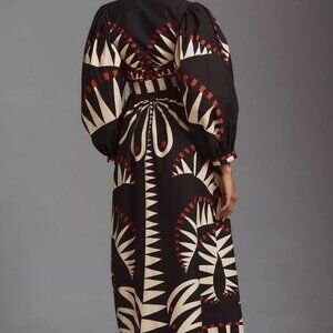 NWT Farm Rio - Coconut Grove Printed V Neckline Puffed Sleeve Maxi Sz M