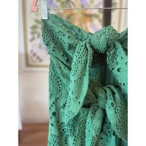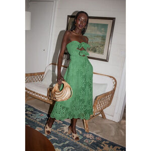NWT Farm Rio Coconut Tree Richilieu Strapless Midi Dress Green Womens Sze Medium