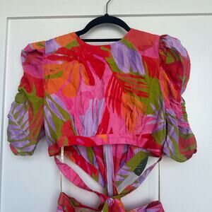 NWT Farm Rio Colorful Leaves Midi Dress Summer Multicolor Cutout Size Small