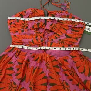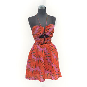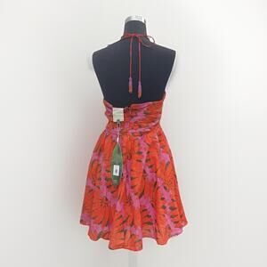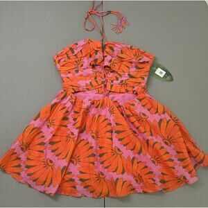 NWT Farm Rio Copacabana Floral Dress L Pink Mini Ruched Halter Fit and Flare