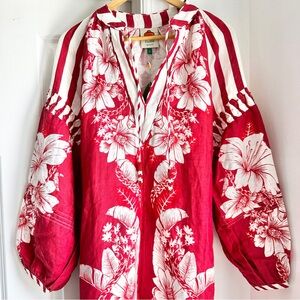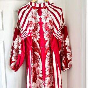 NWT Farm Rio Floral Chains Stripe Long Sleeve Linen Midi Dress