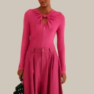 NWT Farm Rio Front Twist Cutout Long Sleeve Pink Bodysuit Size XL