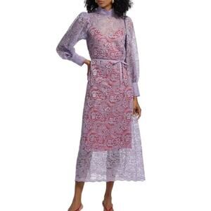 NWT Farm Rio Lace Tie-Waist Midi/Maxi Dress - Purple - Lavender - XS