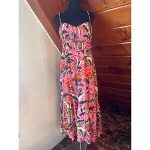 This Farm Rio Leopard Forest Cotton Backless Midi Dress is so gorgeous! The dress is new with tags, but the paper tag is ripped off, though still attached by the string. It has a backless design and is a midi length. This dress retailed for $230. Get it here for a steal!