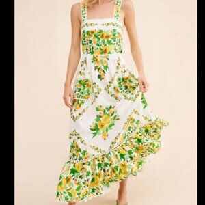 NWT Farm Rio Linen Papaya Salad Scarf Maxi Dress