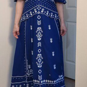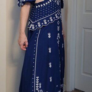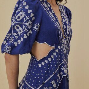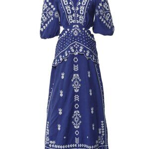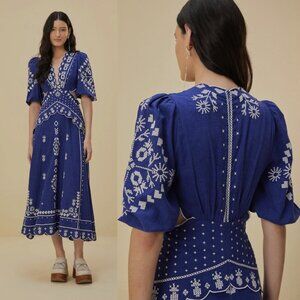 NWT Farm Rio Navy Blue Embroidered Cut-Out Midi Dress