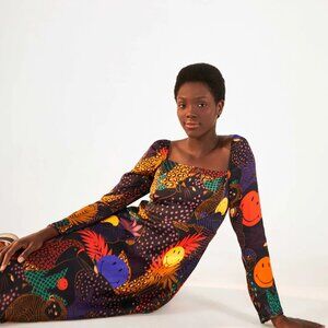 Your season is off to a happy start! The Pop Jungle Smiley® Midi Dress is here to add more fun to your days with its pop color palette in the coziest fit. So invite your layers and puffer jackets to spread joy all around, whatever the plans, with high doses of optimism!