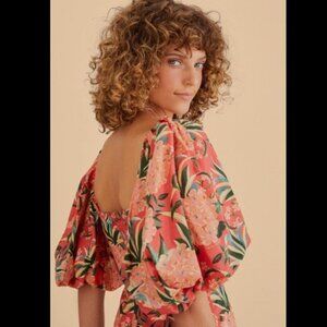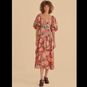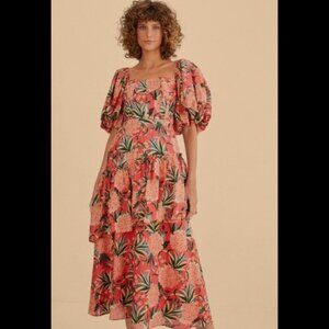 NWT Farm Rio Red Pineapple Bloom Cut Out Midi Dress Medium