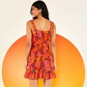 NWT Farm Rio Red Spring Banana Smocked Mini Dress Size L