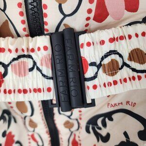 - Light color side has an elasticized matching belt with belt loops to keep in place. The slide buckle on the belt is a black metal with Farm Rio on it.