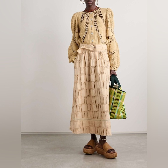 NWT Farm Rio Sand Belted Crochet Midi Skirt - Size Medium