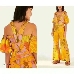 NWT Farm Rio Sarja Floral Jean Jumpsuit Size Medium