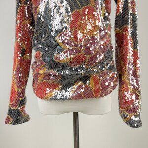 NWT Farm Rio Shiny Chita Tulle Sequins Floral Multicolor Blouse Size S