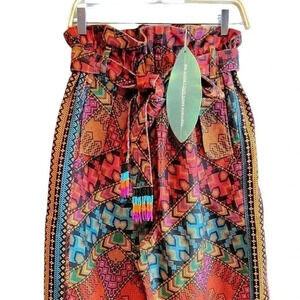 NWT Farm Rio Striped Paper Bag Pants Beaded Bohemian Aztec Tribal Tropical Pants