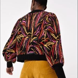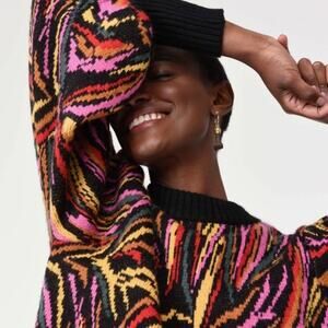 NWT Farm Rio Sweater Womens Small Shiny Zebra Sweater Balloon Sleeve Multicolor