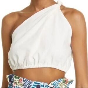 NWT Farm Rio Tie Knot Linen Blend One-Shoulder Women's Crop Top In Ivory