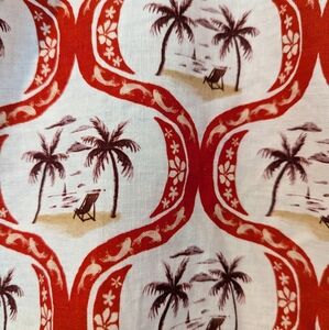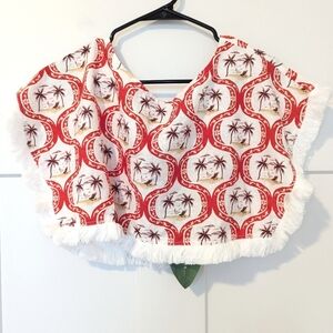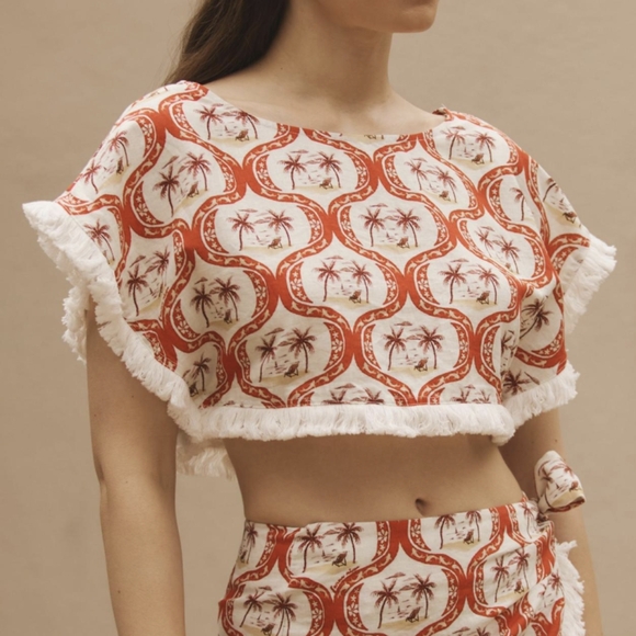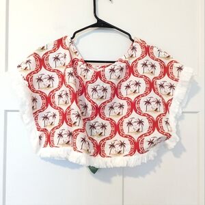 Farm Rio Summer beach cover-up crop, fringe top. Tropical pattern of fish and palm trees.