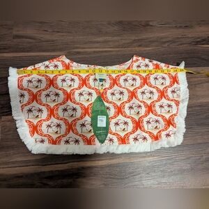 Farm Rio Summer beach cover-up crop, fringe top. Tropical pattern of fish and palm trees.