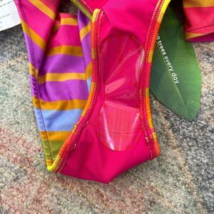 NWT Farm Rio V-Neck Cutout Shiny Stripe Rainbow One-Piece Swimsuit Small Pink