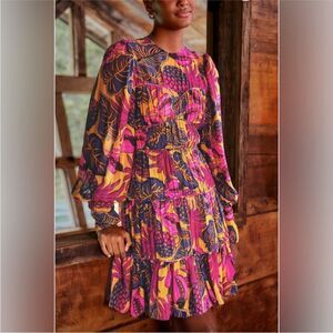NWT Farm Rio Yellow Fruit Dream Long Sleeve Mini Dress-J15