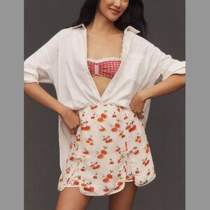 NWT Farm Rio x Anthropologie Cherry Linen Blend Skort Shorts Skirt