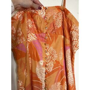 NWT Farm Rio x Anthropologie Linen Blend Strapless Drop Waist Maxi Dress