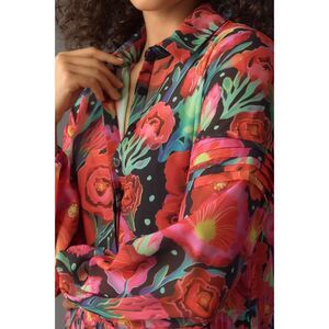 Description from website: Our favorite mantra for standout style? Prints and repeat. This only-at-Anthro dress dons a signature Farm Rio print complete with blouson sleeves and a pleated maxi skirt cascading from an on-trend drop waist.