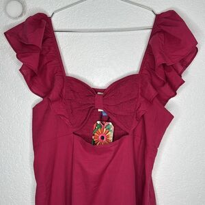 NWT Farm Rio x Anthropologie Ruffle Midi Dress Raspberry XL