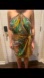 Vibrant tropical halter wrap dress with a colorful bird and leaf pattern. Perfect for a summer outing.