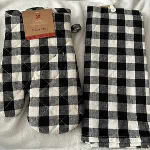 Cute farmhouse buffalo plaid kitchen towel and oven mitt.