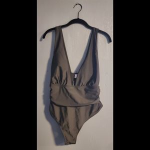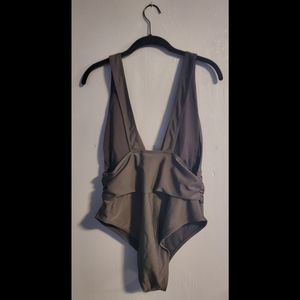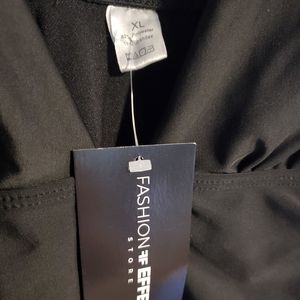 Never worn, with tags. Fashion Effect Store one piece black swimsuit. Low plunge with removable padding.