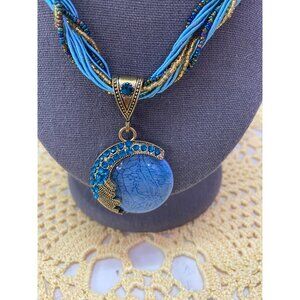NWT Bohemian Style Retro Gemstone Pendant Dark Blue Necklace.