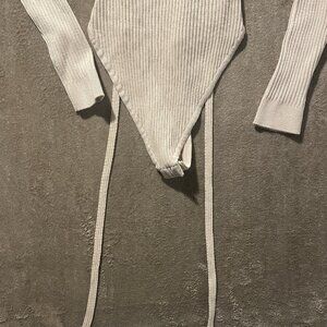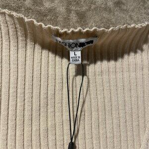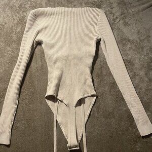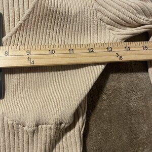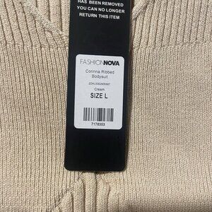 NWT Fashion Nova Bodysuit Womens Sz Large Ribbed Corinna Beige Tan Knit Long Slv